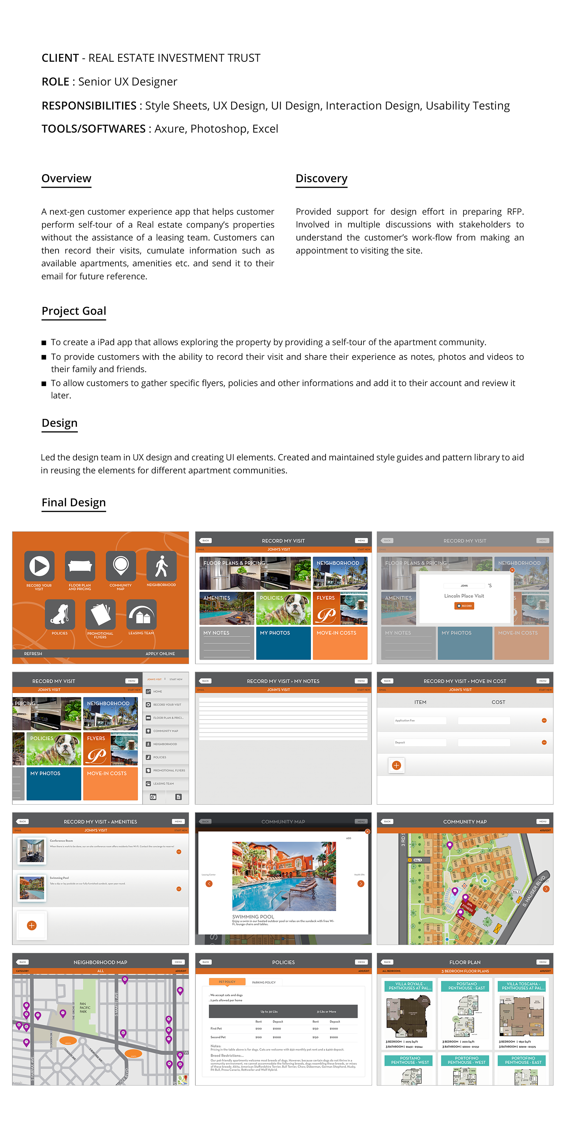 Apartment community customer experience iPad app